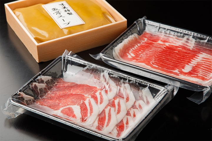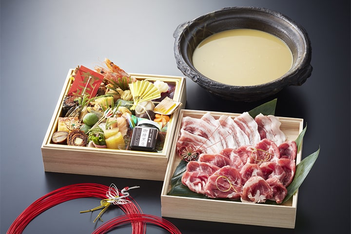 創業以来、大人気の「博多割烹」味美お節と、「味美」の看板メニューとなっている「魚骨のスープのしゃぶしゃぶ」のセット。